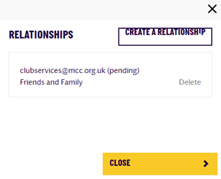 If you wish to remove someone, you may do so at any time, by selecting ‘Manage my Relationships’ and then selecting ‘delete’ next to the relevant account.