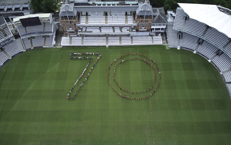 The children from Gateway Academy who take part in MCC’s community outreach programme, came together with MCC and community representatives to form a special ‘70’ message, in front of the ground’s iconic Pavilion and ahead of the LV=Insurance Test Match between England and New Zealand, which gets underway at Lord’s on Thursday, the first day of the four day national celebrations.